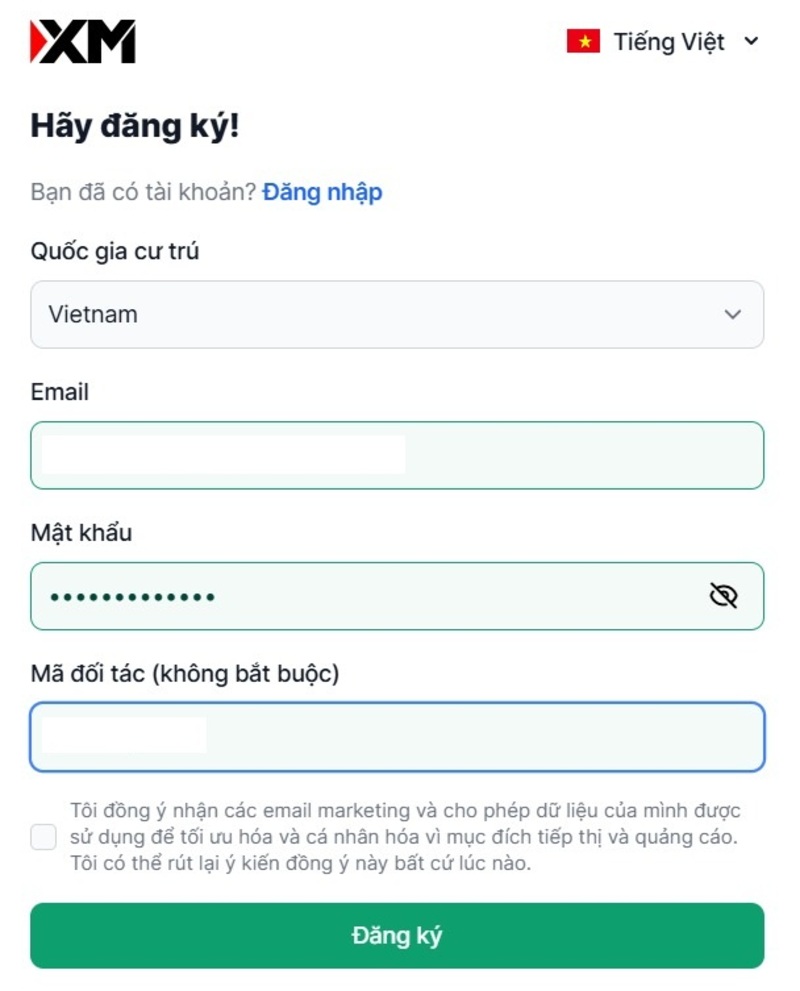 Trường hợp 1: Bạn chưa có tài khoản XM
