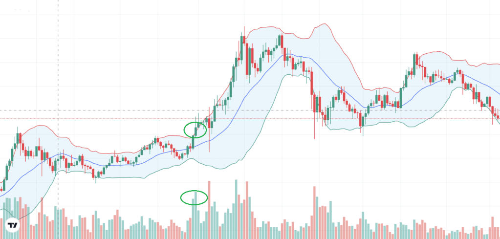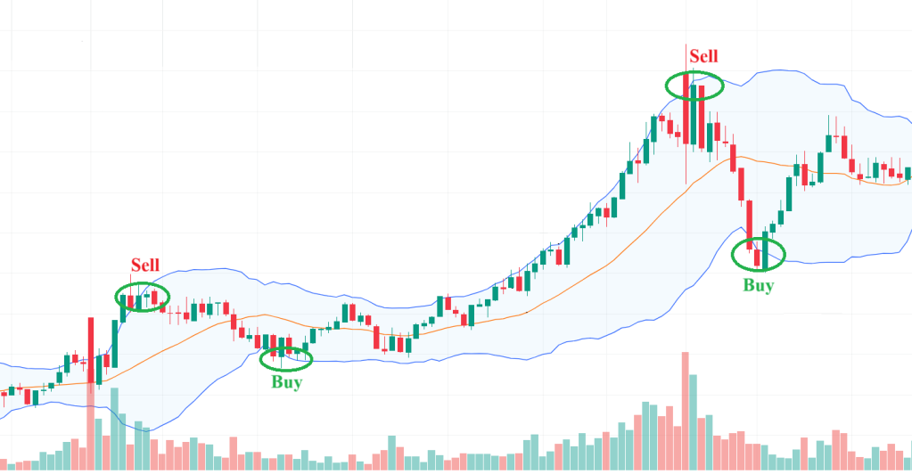 • Khi giá phá vỡ dải trên với khối lượng tăng mạnh → tín hiệu mua.