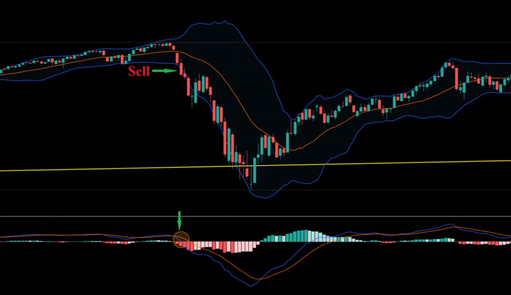 • Nếu giá phá dải dưới Bollinger + MACD cắt xuống đường Signal → tín hiệu bán mạnh.
