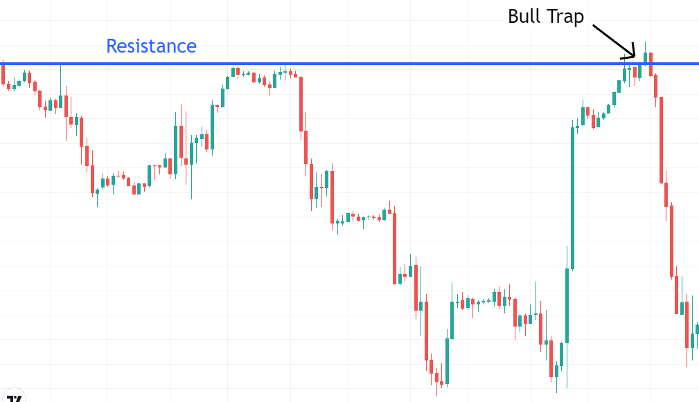 Bull trap, hay bẫy tăng giá, là hiện tượng giá tài sản tài chính tạm thời tăng mạnh, phá vỡ các mức kháng cự quan trọng, tạo ảo tưởng về sự đảo chiều xu hướng từ giảm sang tăng. Điều này khiến nhà giao dịch tin rằng bull market đang bắt đầu, vội vàng mở vị thế mua để đu theo. Tuy nhiên, ngay sau khi giá vượt qua một mức kháng cự quan trọng, nó nhanh chóng đảo chiều và lao dốc, khiến những người mua vừa tham gia bị mắc kẹt và chịu thua lỗ nặng nề khi phải cắt lỗ.