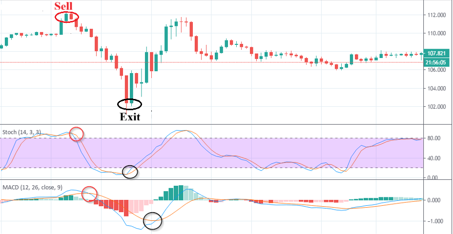 - Bán khi Stochastic trên 80 và bắt đầu cắt xuống.