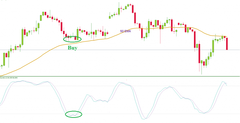 - Mua khi Stochastic nằm dưới 20 và bắt đầu cắt lên.