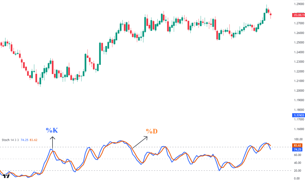 Chỉ báo Stochastic được tính dựa trên hai thành phần chính: %K và %D.