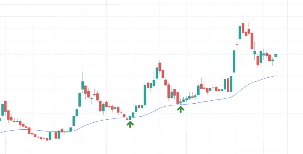 - Xác định hỗ trợ/kháng cự động: MA thường đóng vai trò như một “lớp đệm” nơi giá bật lại.