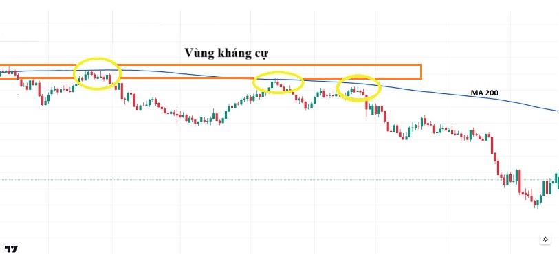 - Khi MA200 trùng kháng cự cứng → tín hiệu bán đáng tin cậy.