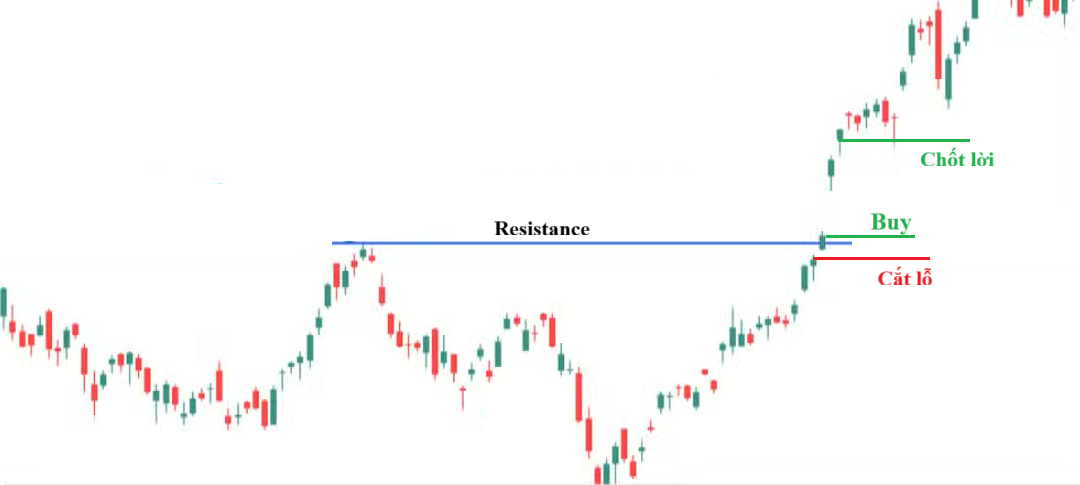 Chốt lời: Tùy vào mục tiêu lợi nhuận, hoặc có thể chốt lời theo tỷ lệ R:R là 1:2 , 1:3.