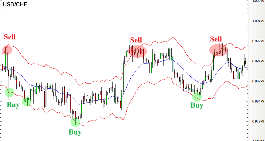 - Khi giá chạm đường trên, đây có thể là tín hiệu quá mua.