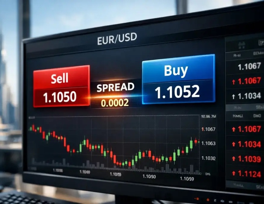• Spread: Là loại phí cơ bản nhất mà bất kỳ trader nào cũng phải trả. Khi bạn mở lệnh mua, bạn vào lệnh ở giá Ask. Khi bạn đóng lệnh, hệ thống tính theo giá Bid. Khoảng chênh giữa hai mức giá này chính là spread, và đây là khoản tiền sàn thu về cho mỗi giao dịch.