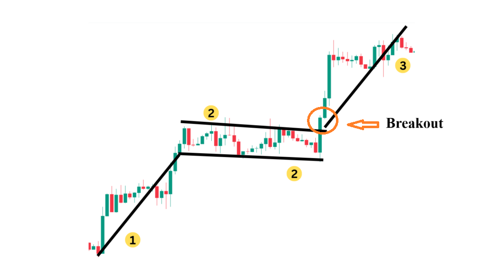 Mô hình này được gọi là tăng vì nó xuất hiện trong xu hướng tăng và dự báo giá sẽ tiếp tục tăng sau khi hoàn thành giai đoạn điều chỉnh.
