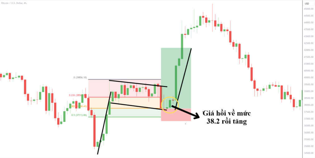 Sử dụng Fibonacci để xác định các mức hỗ trợ tiềm năng trong lá cờ và mục tiêu lợi nhuận tiềm năng sau khi phá vỡ.