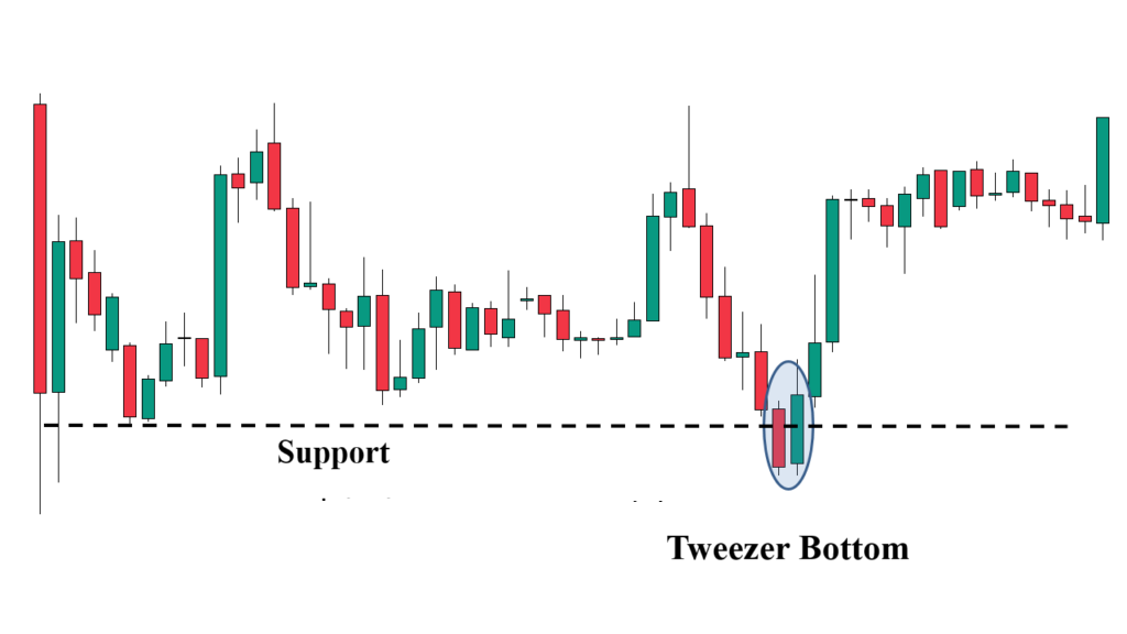 Hỗ trợ và kháng cự: Mô hình Tweezer Bottom có độ tin cậy cao hơn nhiều nếu nó xuất hiện tại một vùng hỗ trợ mạnh. Việc giá bật tăng từ một vùng hỗ trợ đã được thiết lập càng củng cố khả năng đảo chiều.