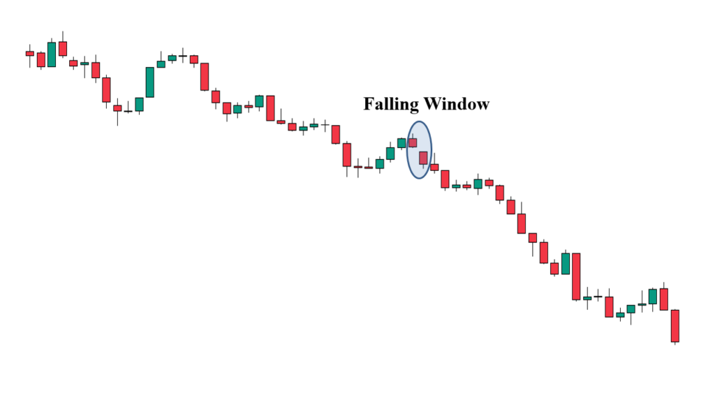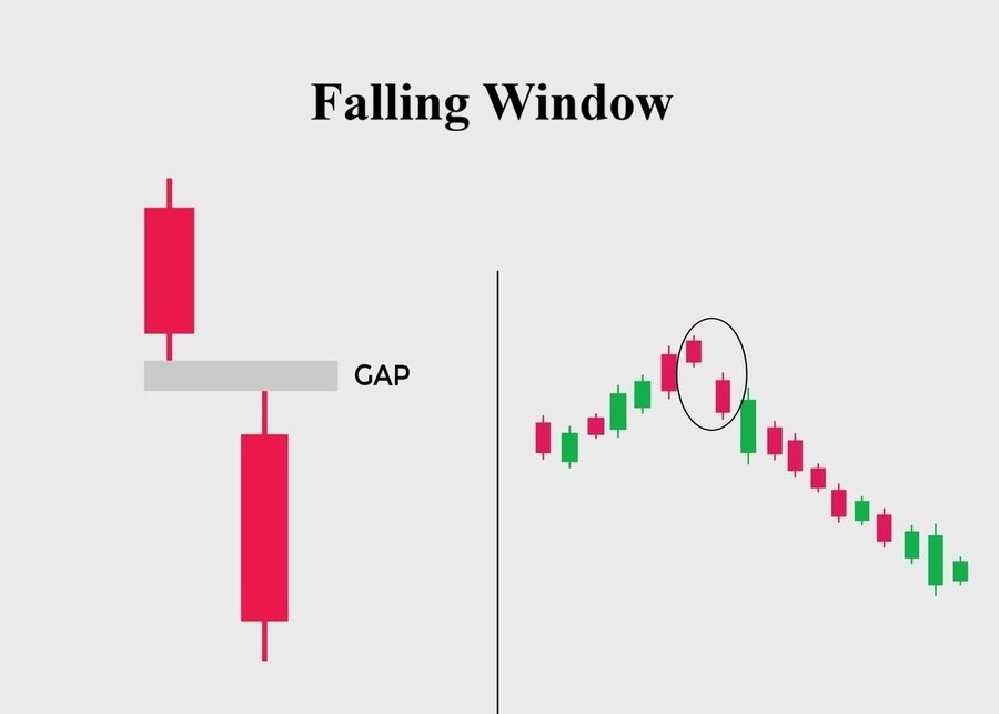 Mô hình nến Falling Window hay còn gọi là cửa sổ giảm, là một mô hình nến Nhật tiếp diễn xu hướng giảm, đặc trưng bởi một khoảng trống giá đi xuống, xuất hiện trong xu hướng giảm rõ ràng. Khoảng trống này xảy ra khi giá mở cửa của cây nến sau thấp hơn đáng kể so với giá đóng cửa của cây nến trước, tạo ra một vùng giá không có giao dịch. Nó báo hiệu rằng áp lực bán đã tăng đột biến, báo hiệu xu hướng giảm sẽ tiếp tục.