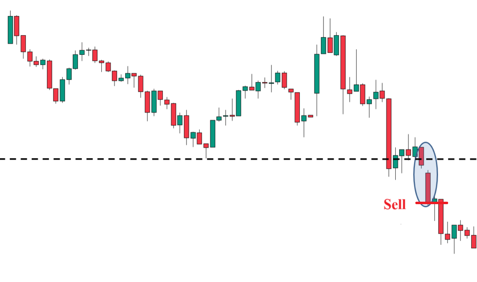 - Tín hiệu mạnh: Khi xuất hiện trong một xu hướng giảm đã thiết lập, mô hình thường dự đoán chính xác sự tiếp tục mạnh mẽ của đà giảm. Nó phản ánh rằng lực bán đã vượt qua lực mua một cách dứt khoát, thiết lập một vùng giá thấp hơn và tạo ra động lượng giảm mạnh.