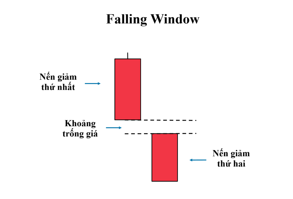 Mô hình nến Falling Window bao gồm hai cây nến chính và một khoảng trống giá, với các đặc điểm sau: