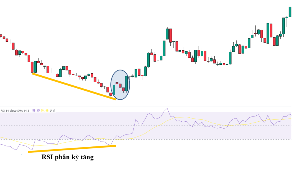- Kiểm tra xem RSI có tạo các đáy cao hơn trong khi giá tạo các đáy thấp hơn, đây là dấu hiệu RSI phân kỳ tăng.
