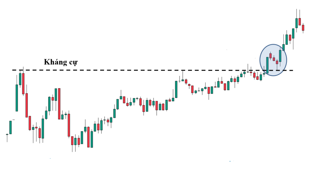 - Nến số 2, 3, 4: Đây là giai đoạn tạm nghỉ. Sau một đợt tăng/giảm mạnh, một số nhà giao dịch chốt lời, khiến giá điều chỉnh nhẹ. Tuy nhiên, các nến nhỏ cho thấy lực điều chỉnh này yếu và không đủ sức để đảo ngược xu hướng. Giai đoạn này cũng có thể đánh lừa một số nhà giao dịch, khiến họ nghĩ rằng xu hướng sẽ đảo chiều.