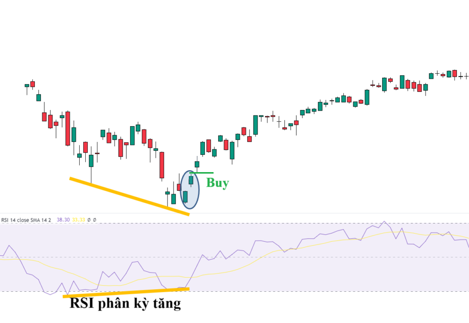 - Nếu RSI nằm trên mức 50 hoặc đang có xu hướng đi lên, điều này củng cố khả năng xu hướng tăng tiếp diễn.