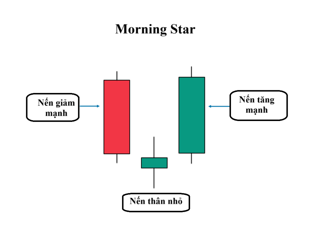 Mô hình nến sao mai bao gồm ba cây nến với các đặc điểm cụ thể như sau: