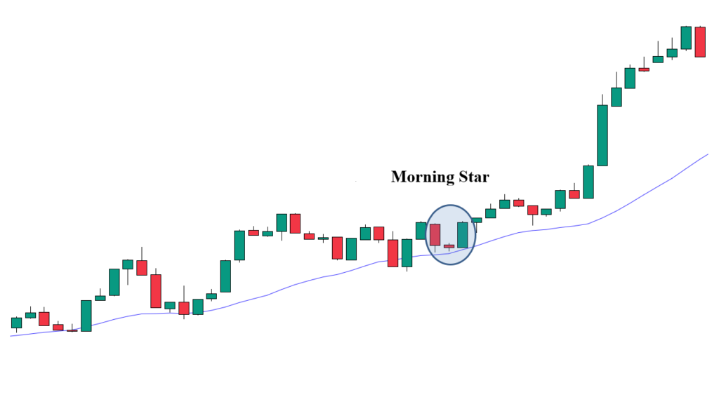 - Đường trung bình động: Nếu giá phá vỡ lên trên các đường MA quan trọng như MA20, MA50 sau khi Morning Star hình thành, tín hiệu càng được củng cố.