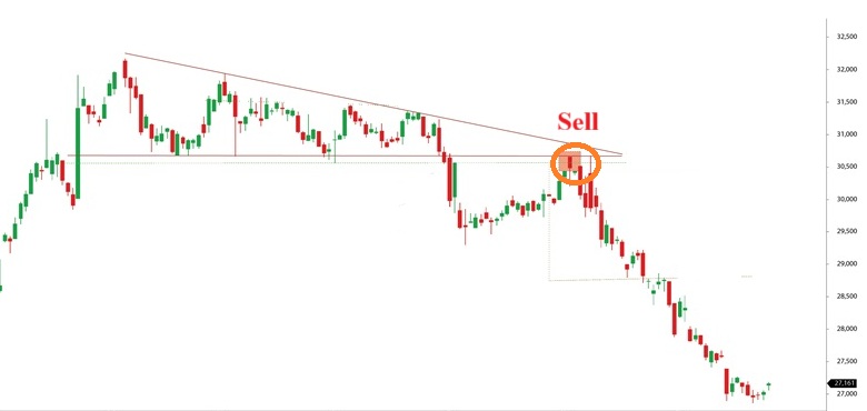- Điều kiện: Sau khi giá phá vỡ đường hỗ trợ, đợi giá quay trở lại để kiểm tra lại đường hỗ trợ đó. Sau đó, chờ đợi tín hiệu đảo chiều giảm giá từ vùng kháng cự này .