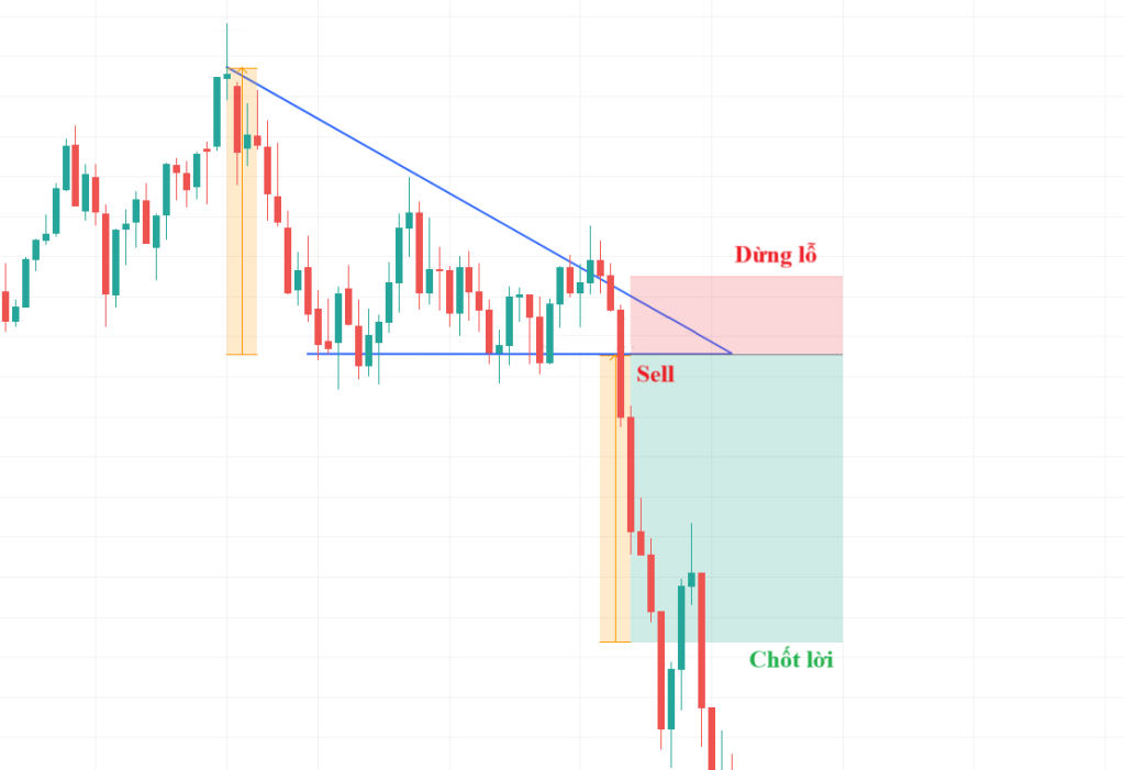 - Điểm vào lệnh: Khi giá phá vỡ đường hỗ trợ ngang.