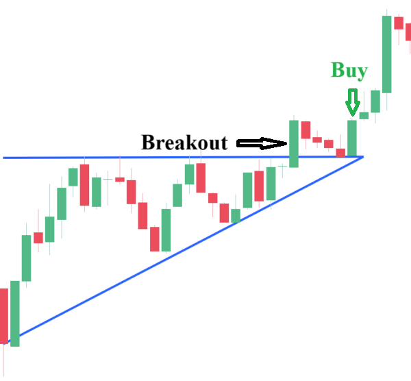 Có hai chiến lược vào lệnh phổ biến khi giao dịch với mô hình tam giác tăng dần: