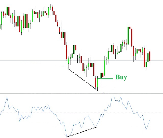 - Điểm vào lệnh: Nhà giao dịch không nên vào lệnh ngay khi thấy sự lệch pha. Thời điểm tối ưu là khi xuất hiện các mô hình nến đảo chiều tăng như Bullish Harami hoặc Pin Bar trùng khớp với đường Momentum bắt đầu dốc lên rõ rệt.