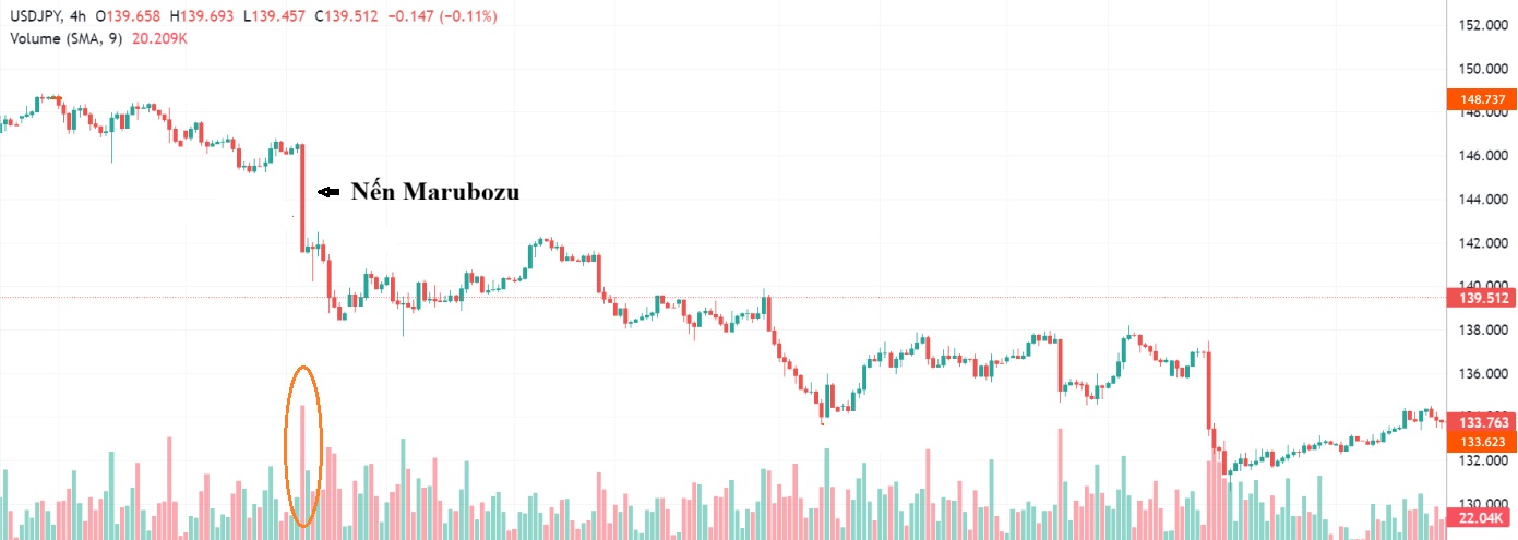 Khối lượng giao dịch cao trong phiên hình thành nến Marubozu là dấu hiệu quan trọng, cho thấy sự tham gia mạnh mẽ của phe mua hoặc phe bán.