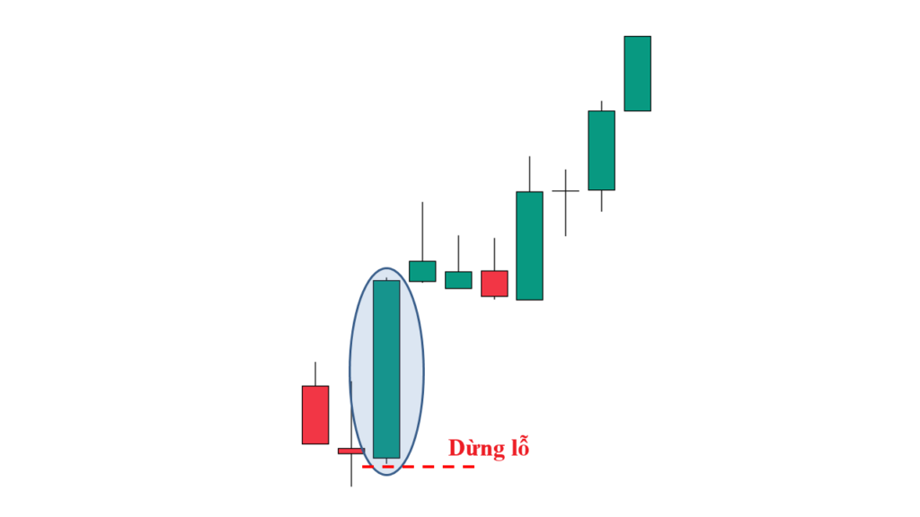 - Đối với nến Marubozu tăng giá: Đặt điểm cắt lỗ ngay phía dưới mức giá thấp nhất của cây nến Marubozu.