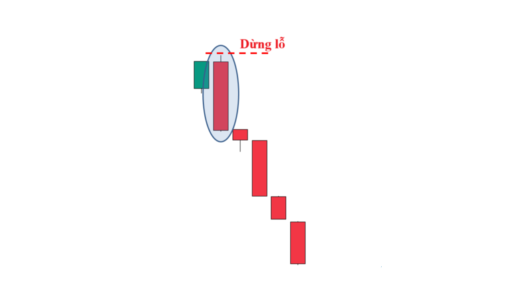 - Đối với nến Marubozu giảm giá: Đặt điểm cắt lỗ ngay phía trên mức giá cao nhất của cây nến Marubozu.