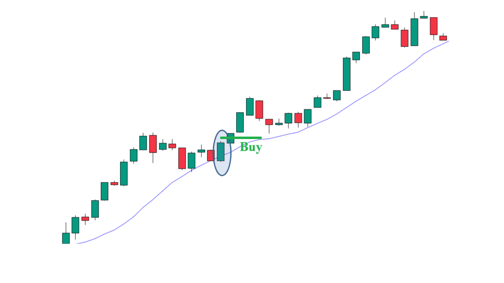 Đặt lệnh Buy ngay khi cây nến Marubozu tăng giá đóng cửa. Để tăng độ an toàn, đợi xác nhận từ cây nến tăng tiếp theo.
