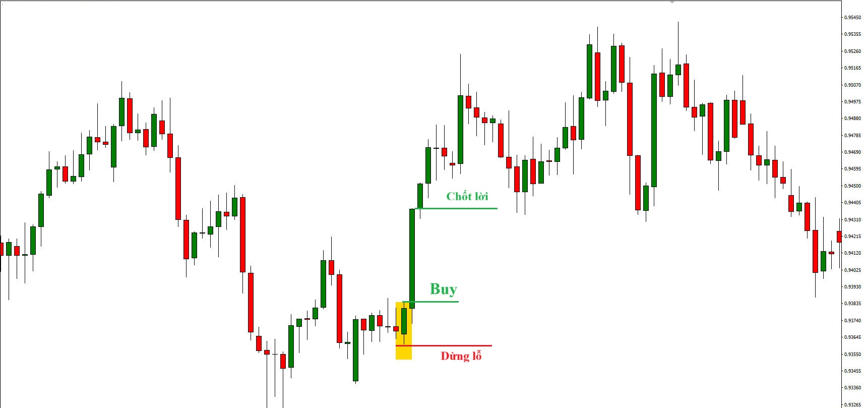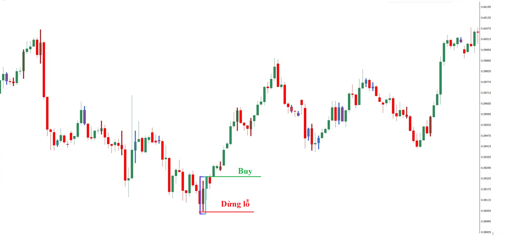 - Lệnh mua: Đặt Stop Loss dưới mức thấp nhất của nến Outside Bar.
