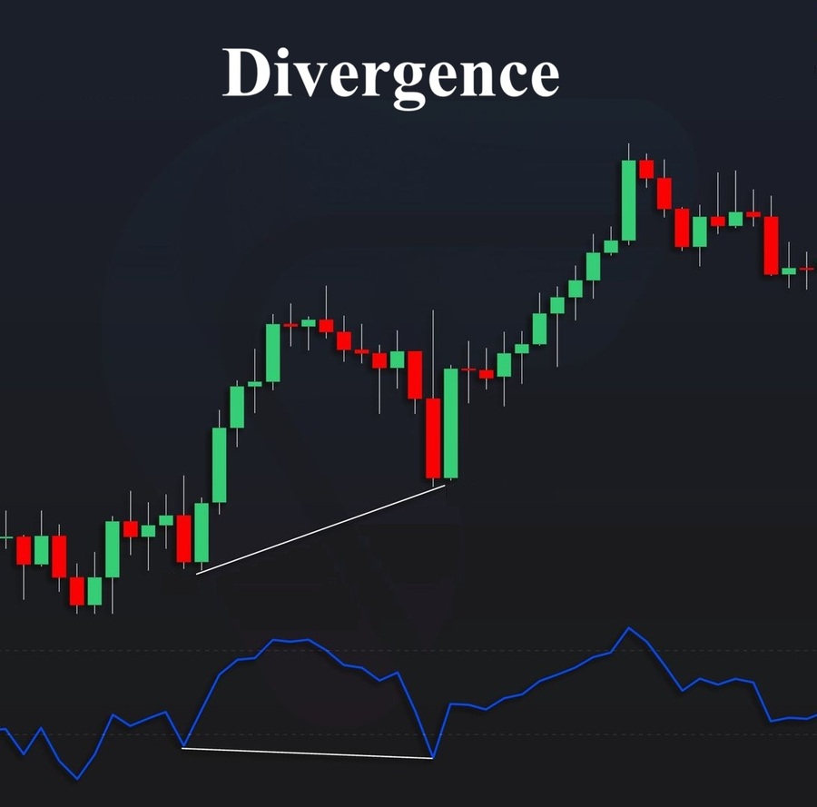 Phân kỳ (Divergence) là hiện tượng giá và chỉ báo động lượng di chuyển theo hai hướng khác nhau. Cụ thể, giá có thể tạo ra các đỉnh cao hơn hoặc đáy thấp hơn, nhưng chỉ báo lại không phản ánh điều đó – thay vào đó, nó cho thấy sự suy giảm động lượng. Điều này giống như một chiếc xe đang lao dốc nhưng động cơ đã bắt đầu yếu đi, báo hiệu một sự dừng lại hoặc đảo chiều sắp xảy ra.