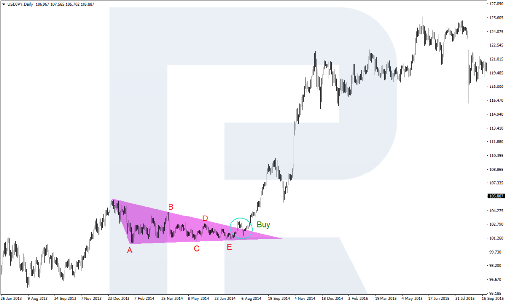 • Tam giác mở rộng: Hai đường xu hướng mở rộng ra ngoài.