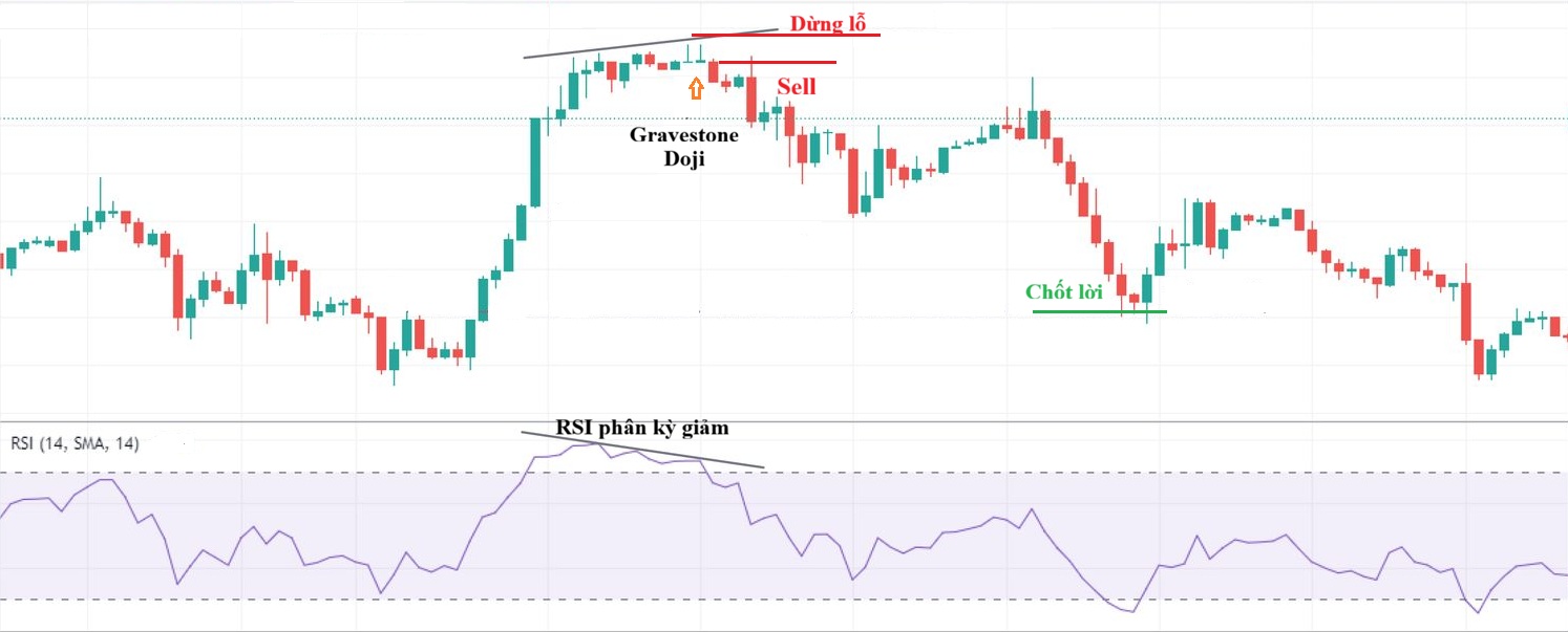 • Tín hiệu xác nhận: Khi tín hiệu RSI phân kỳ xảy ra, đồng thời xuất hiện các mô hình nến như Hammer, Gravestone Doji sẽ có độ tin cậy cao hơn.