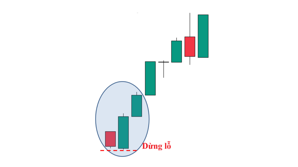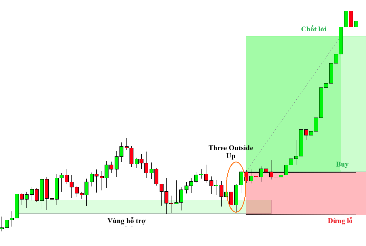 Việc đặt dừng lỗ là vô cùng quan trọng để bảo vệ tài khoản của bạn. Đối với mô hình Three Outside Up, điểm dừng lỗ nên được đặt ngay phía dưới đáy thấp nhất của mô hình.