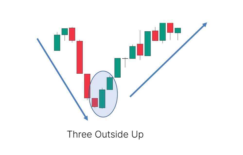 Mô hình nến Three Outside Up là một tín hiệu đảo chiều tăng giá quan trọng trong phân tích kỹ thuật. Mô hình này xuất hiện để cảnh báo rằng xu hướng giảm giá hiện tại sắp kết thúc, và thị trường đang chuẩn bị chuyển sang một xu hướng tăng mạnh mẽ.