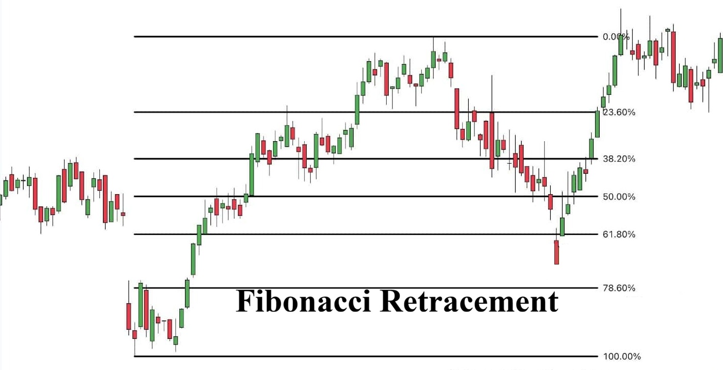 Fibonacci Retracement dựa trên dãy số toán học Fibonacci, giúp xác định các mức giá mà tại đó xu hướng hiện tại có khả năng điều chỉnh trước khi tiếp tục hành trình ban đầu. Các mức tỷ lệ vàng phổ biến nhất bao gồm: 23.6%, 38.2%, 50%, 61.8% và 78.6%.